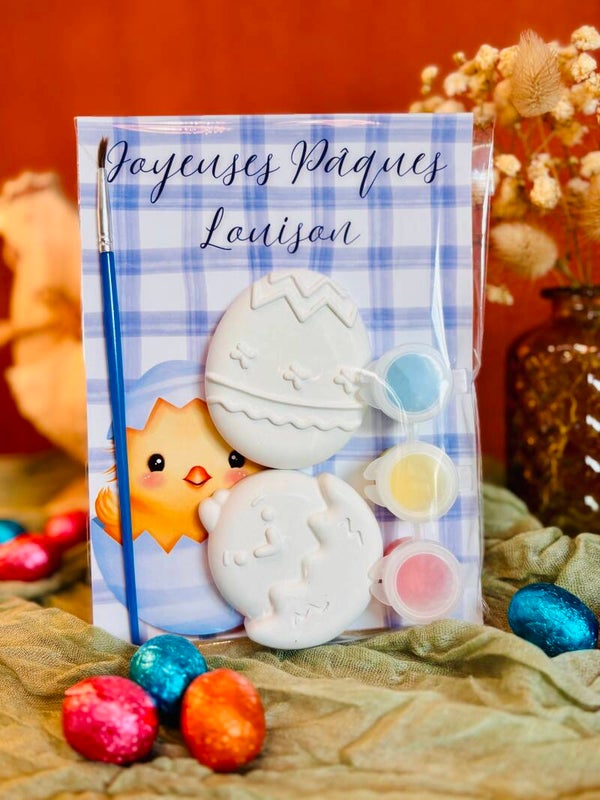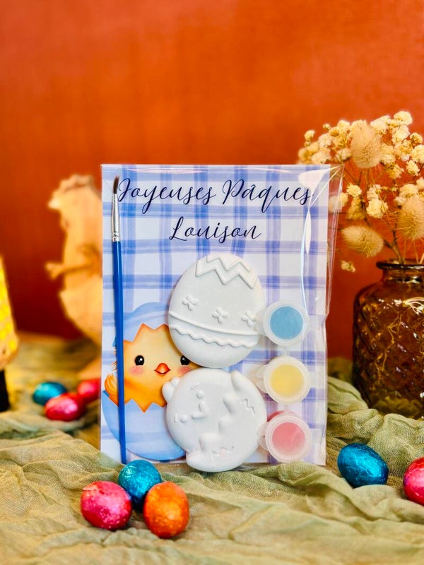 Un joli cadeau personnalisé qui permet aux enfants de peindre leurs propres décorations de Pâques... tout en s'amusant !
